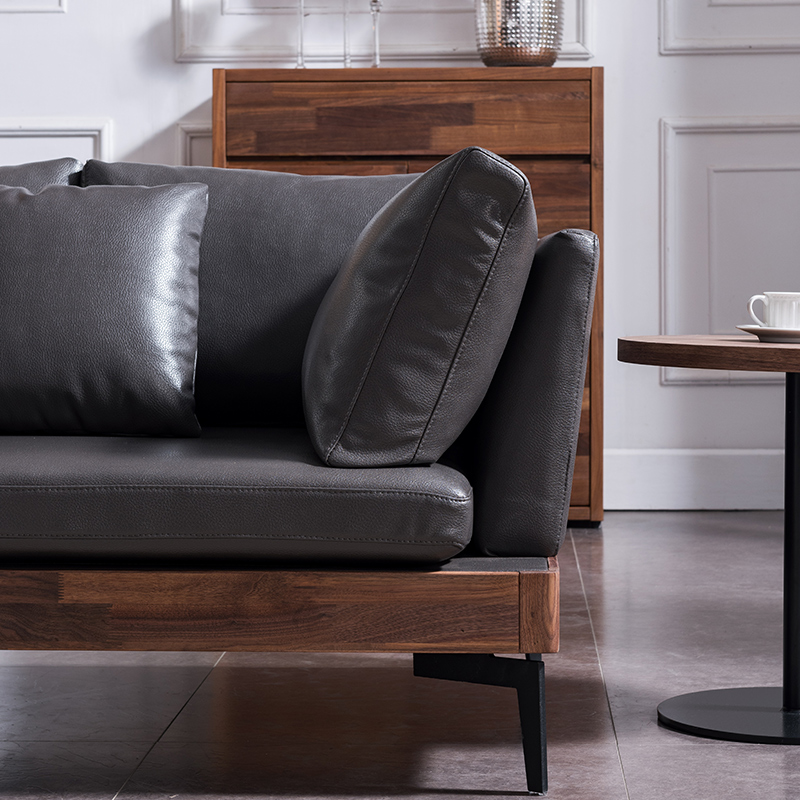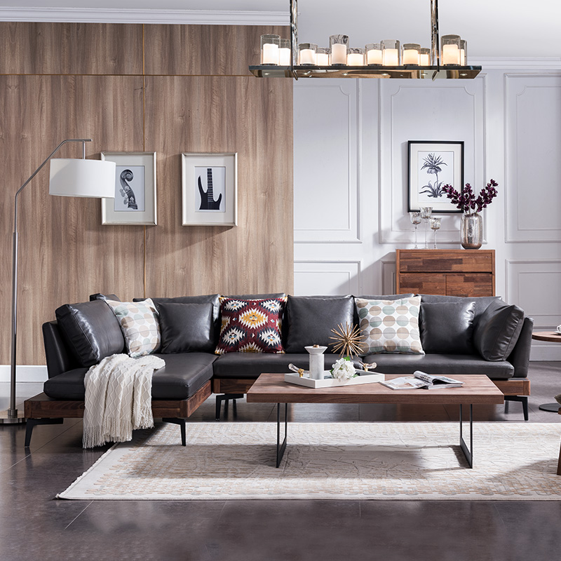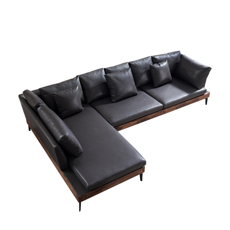 Easy to move sub-furniture Nordic minimalist living-room genuine leather sofa black walnut wood solid wood Princess Corner Sofa Combo