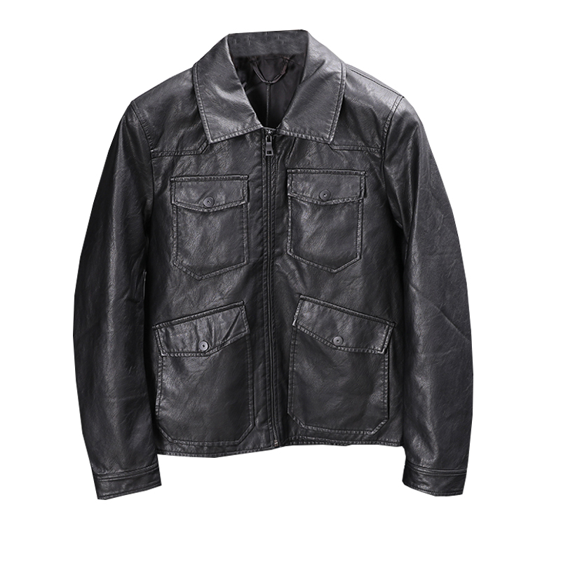 Men's leather clothes male and cotton thickened with a Han version Tidal Handsome Gas Leather Jacket Jacket Locomotive Overturning Winter Short PU