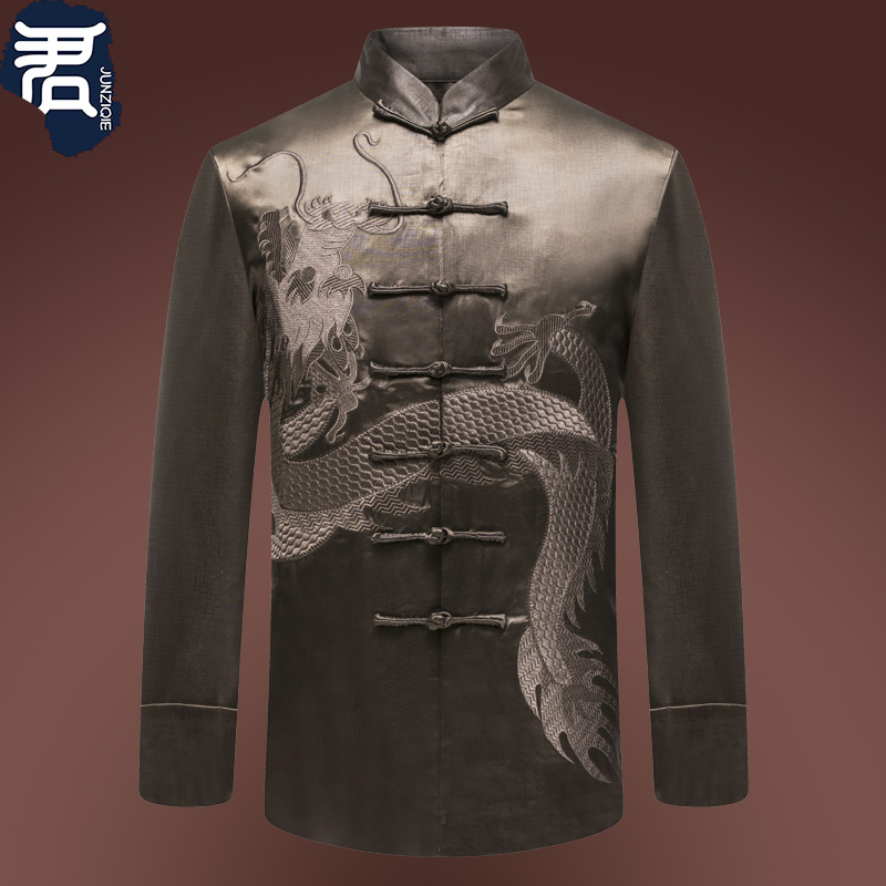 Middle-aged and elderly Tang suit embroidered dragon figure men's Zhongshan suit father grandpa old man clothes Chinese style coat