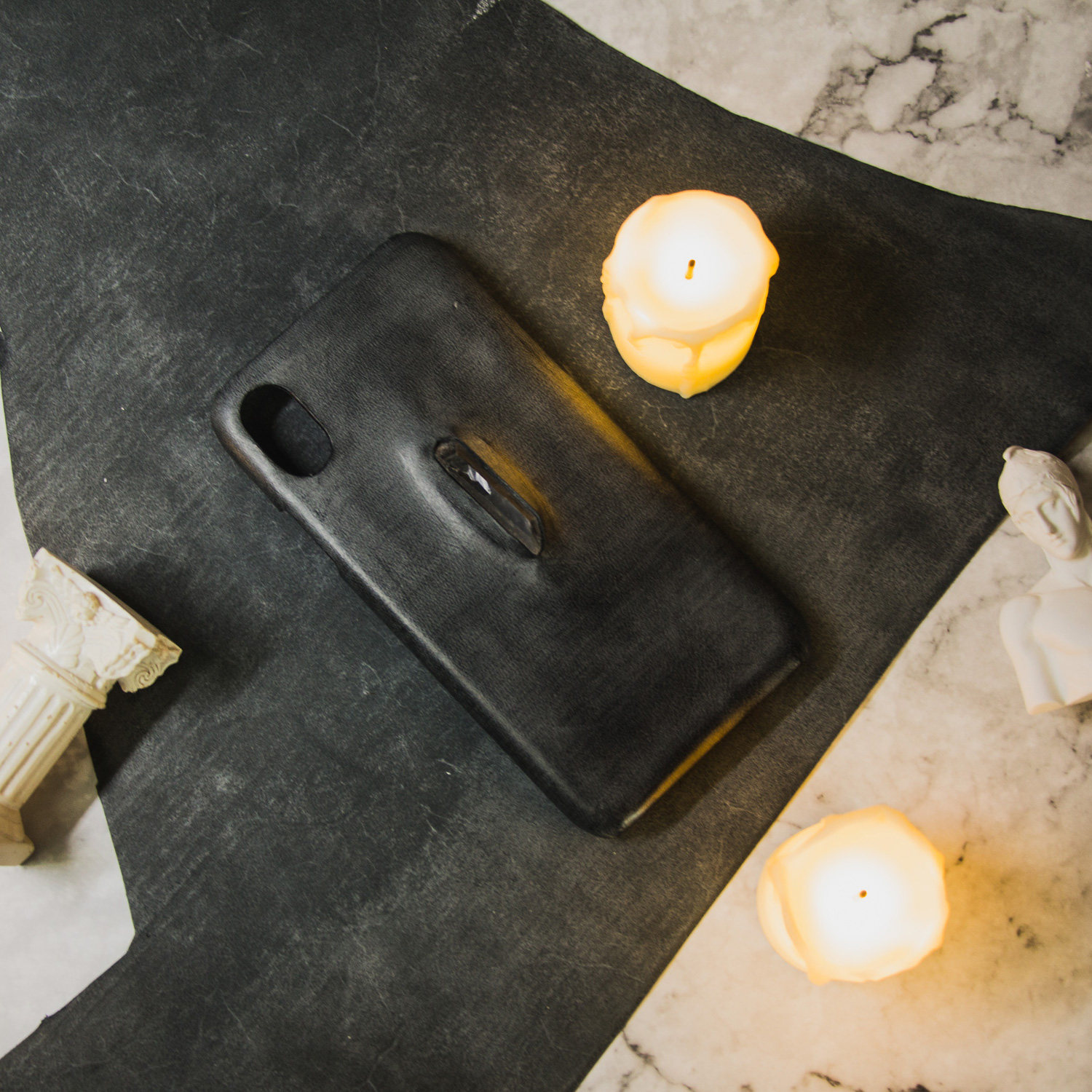 Heat tracing original handmade leather suitable for 8plus crystal iphoneX mobile phone protection shell custom retro dark black stone