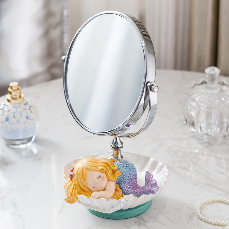 Mermaid Mirror Mirror Desktop Princess Cartoon Dressing Cute Creative HD Decoration Double-sided European Metal