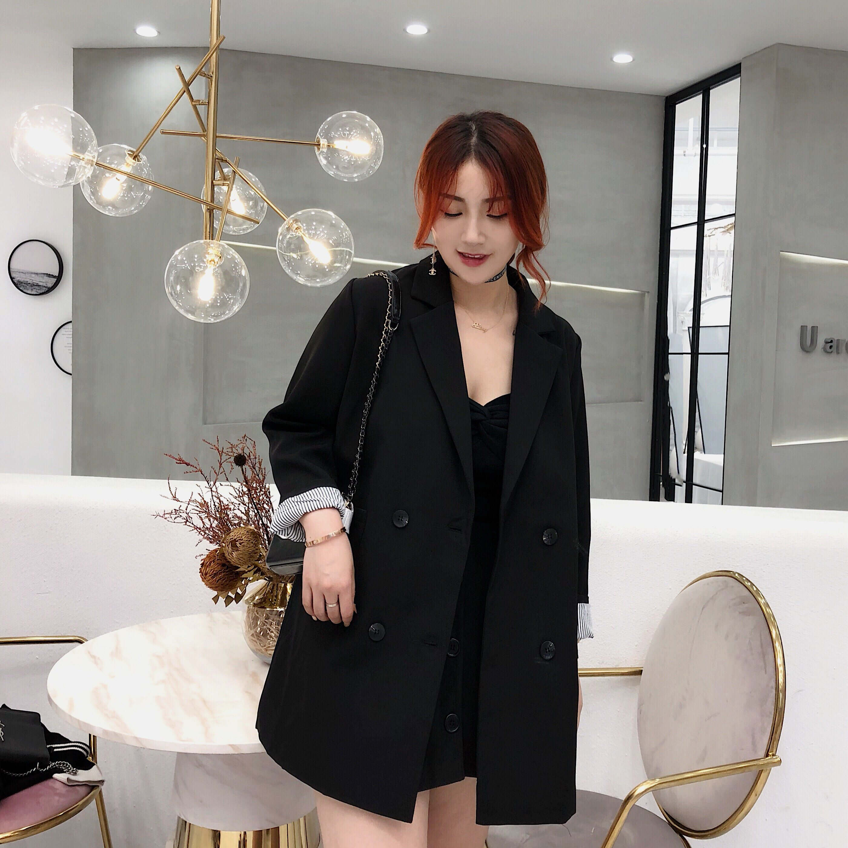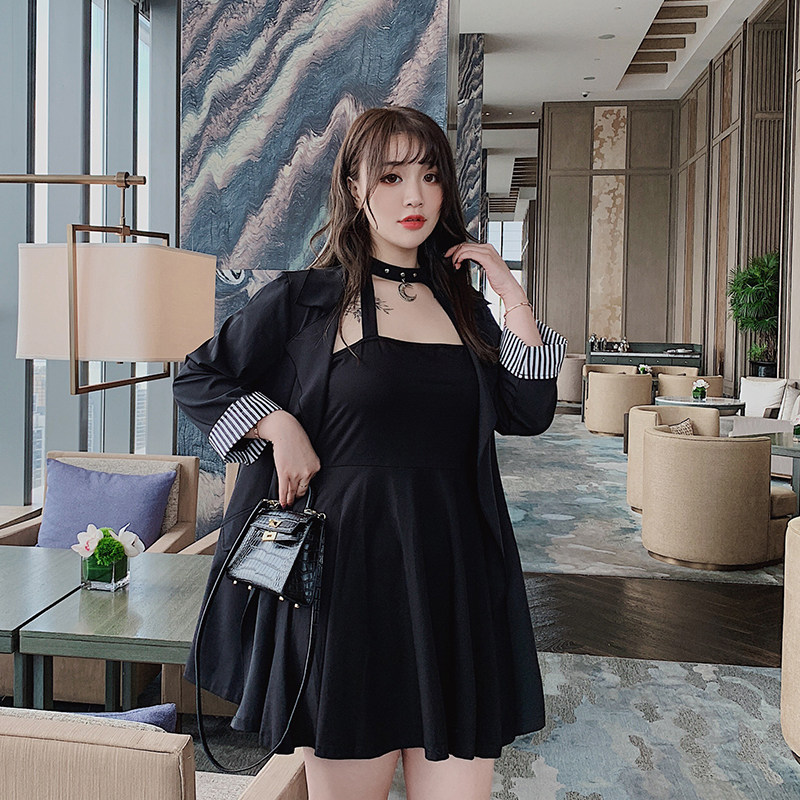 Hitchhil Big Code Woman Dress Fat Mm Fall Loose Slim Mid-Length black suit jacket Korean version casual Western suit-Taobao