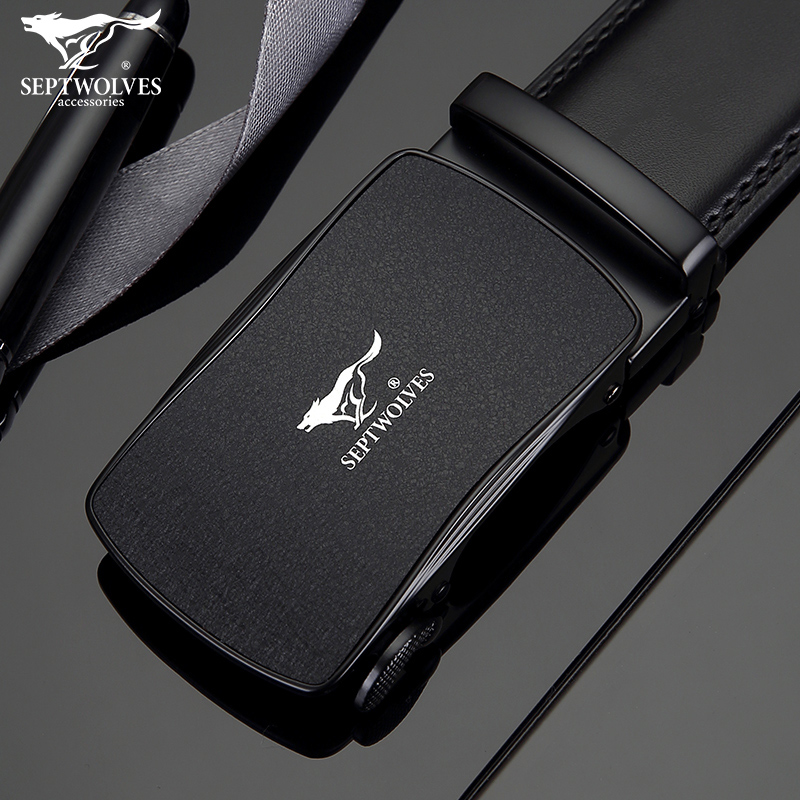 Septwolves Men's Leather Belt Cowhide Trendy Men's Soil Trendy Young People Custom High-grade Automatic Buckle Pure