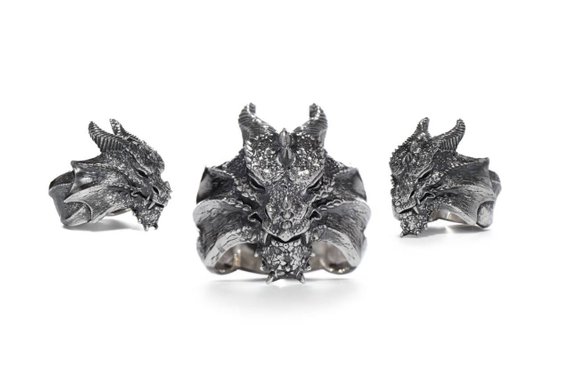 Russian Fantassy hands as Gothic punk delicately sculpted dream Celtic dragon pure silver ring