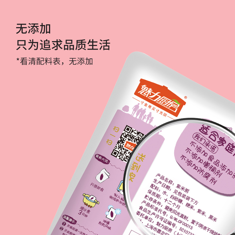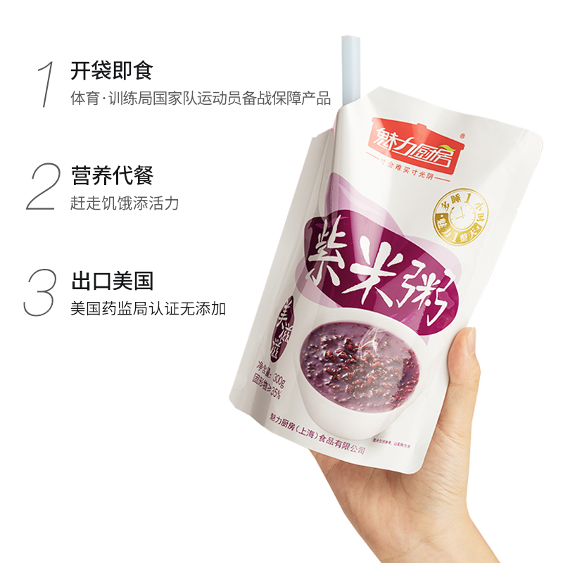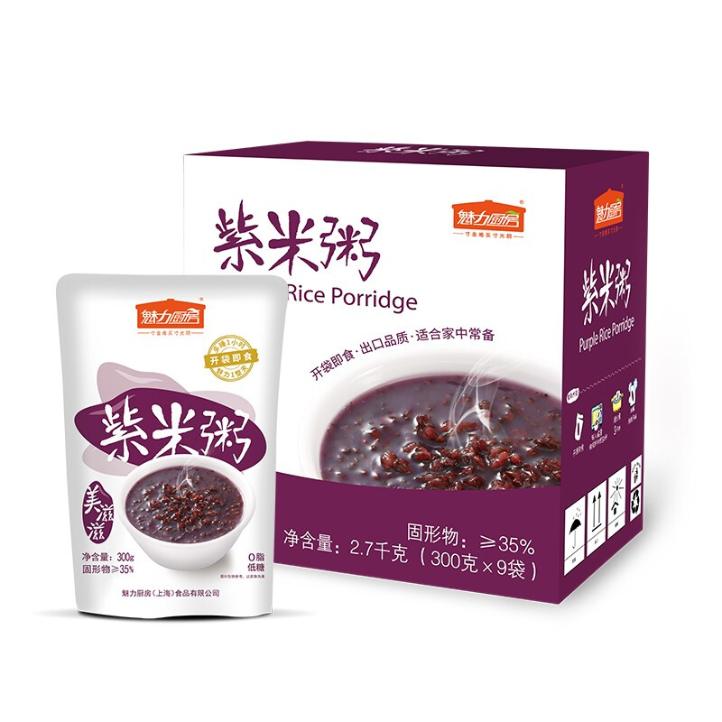 Chalma Kitchen Purple Rice Porporridge 300g*9 bags Breakfast night snack ready-to-eat convenient fast food Open bag ready-to-eat