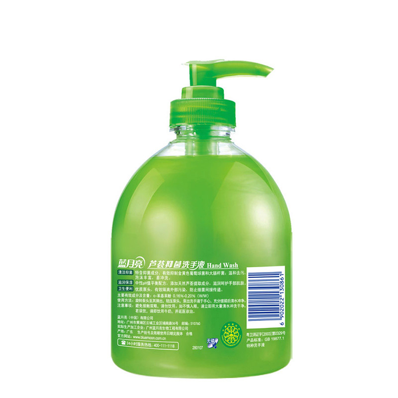 Blue Moon Aloe Vera Antibacterial Hand Sanitizer 500g Bottle * 12 FCL Family Hotel School Foam Rich Hotel