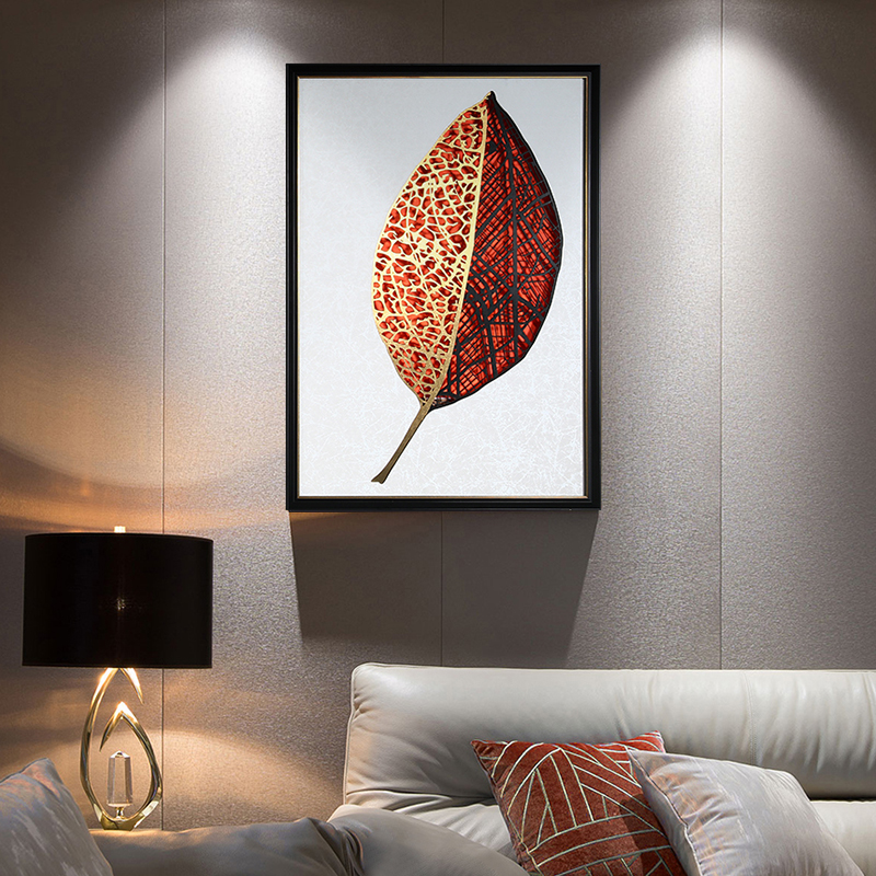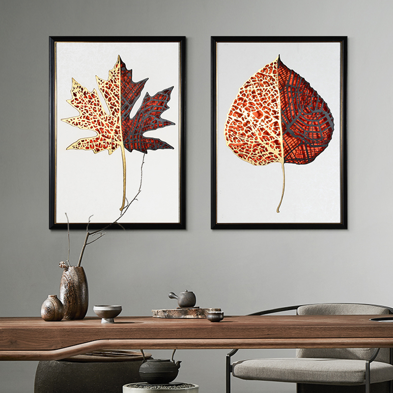 Taiyu Southeast Asia carved bodhi leaf physical painting Thai-style dining room background wall decoration painting porch wall decoration painting