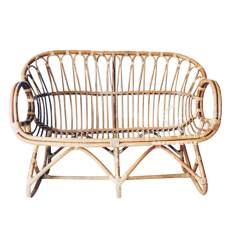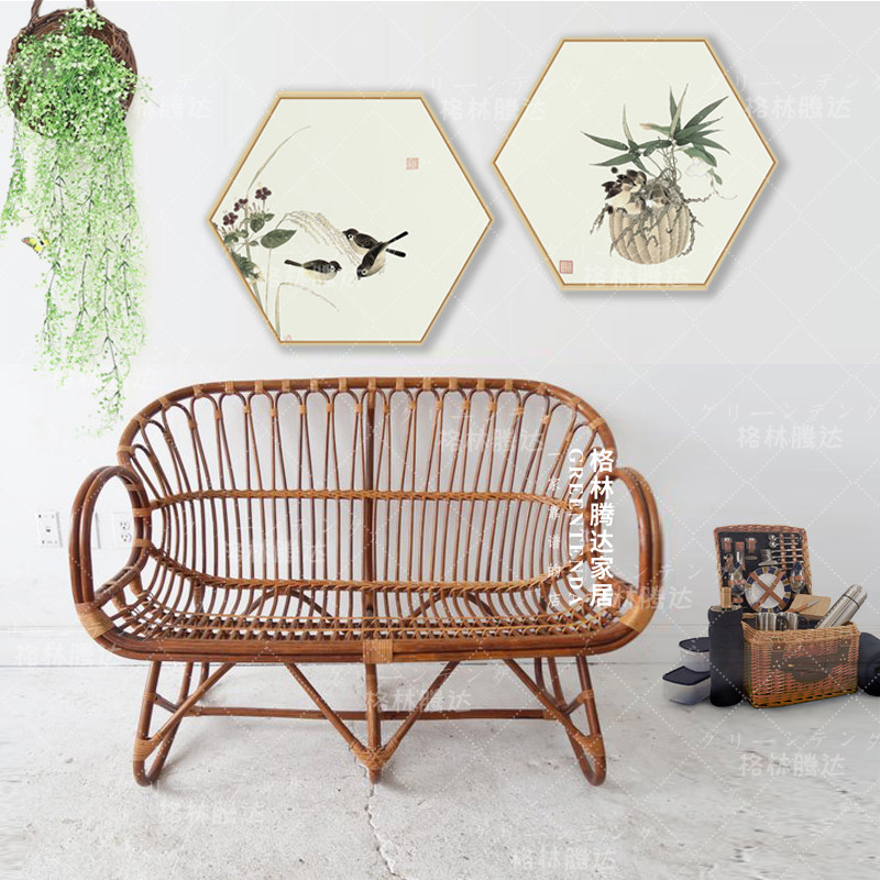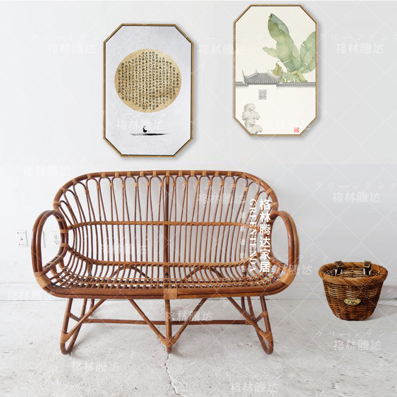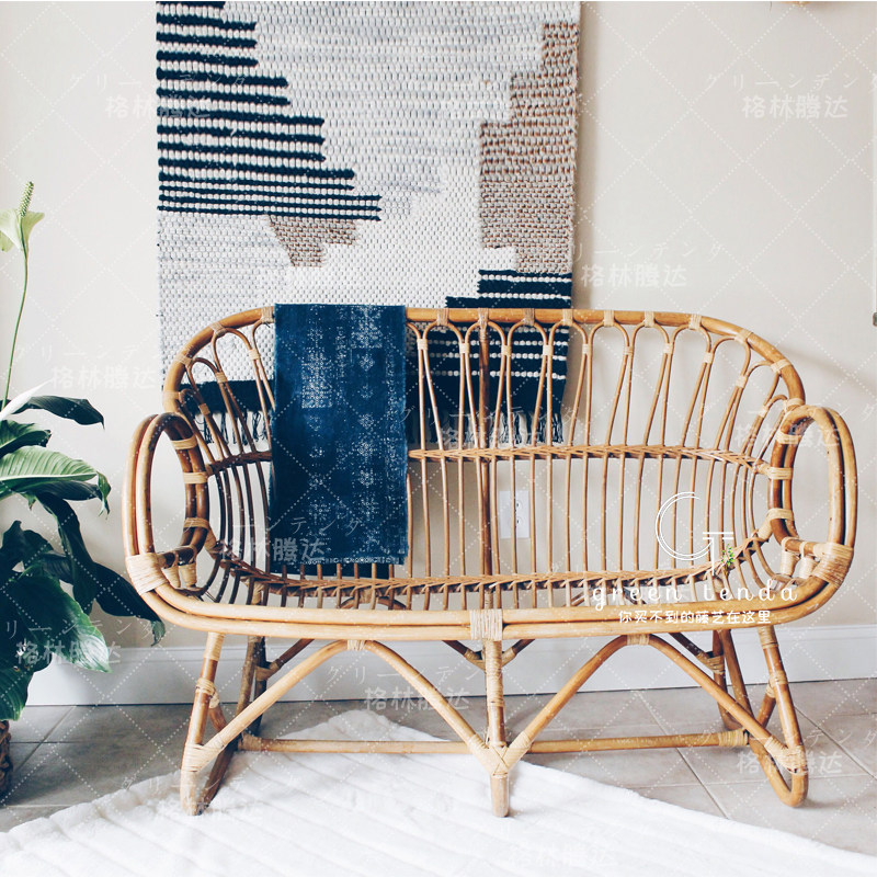 Green Tengda Nordic real rattan sofa double outdoor balcony ins personality rattan rattan chair bedroom small sofa chair