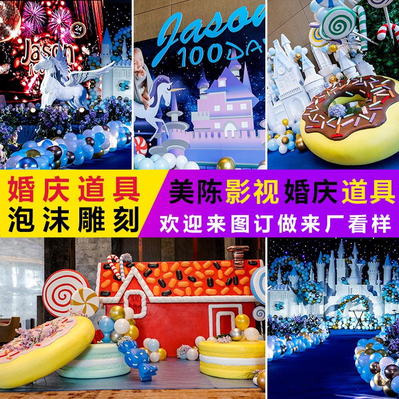 Wedding foam sculpture custom Castle stage background cartoon brown bear stage carving carousel