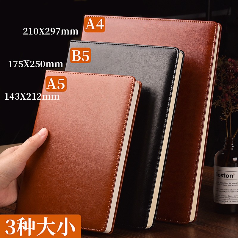Custom a4 notebook Thickened Notepad Business Black Leather Big Office Stationery Work Conference Record Benzi Personality Creative Minima College Student a5 Ultra Thick b5 Hard Leather Face This Diary