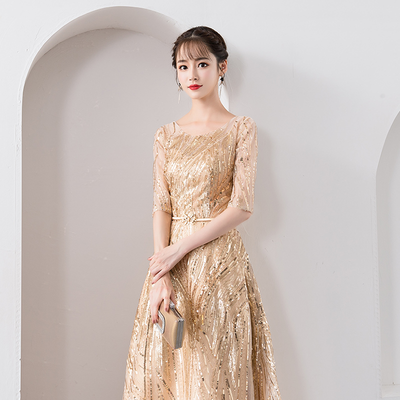 Golden Evening Gown Lady Banquets High-end Grand Chorus Show Host Superior Senssensministresses Dress Foreign Dress