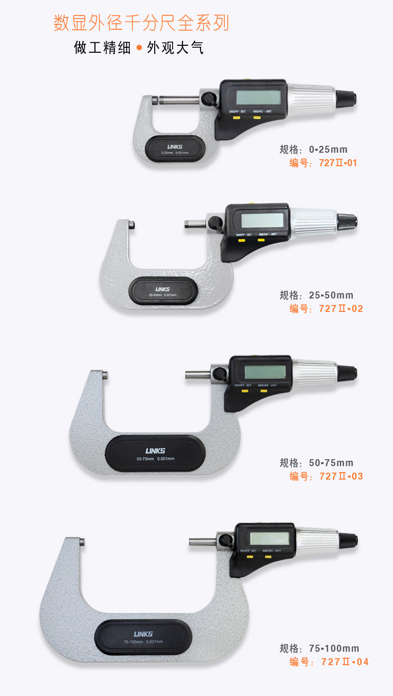 Number of display outer diameter micrometer 0-25mm digital display outer diameter micrometer 25-50mm digital display outer diameter micrometer 50-75mm digital display outer diameter micrometer 75-100mm digital display outer diameter