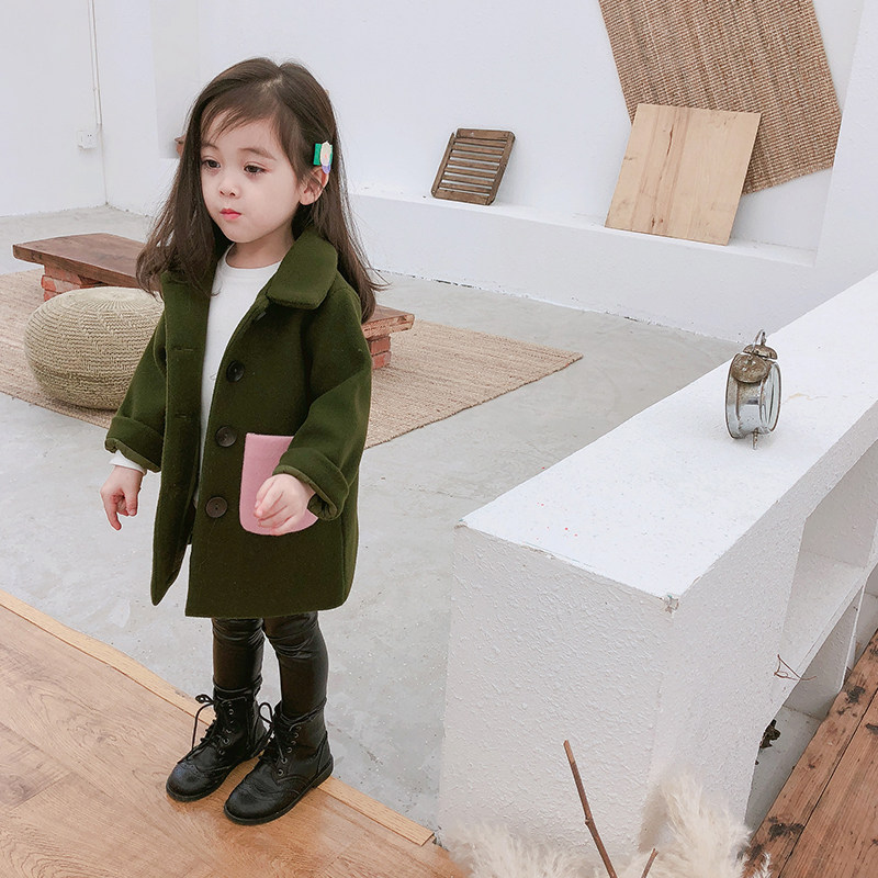 Girls wool coat 2020 autumn and winter new Foreign school virgin baby Korean version of the long version of the thickened coat