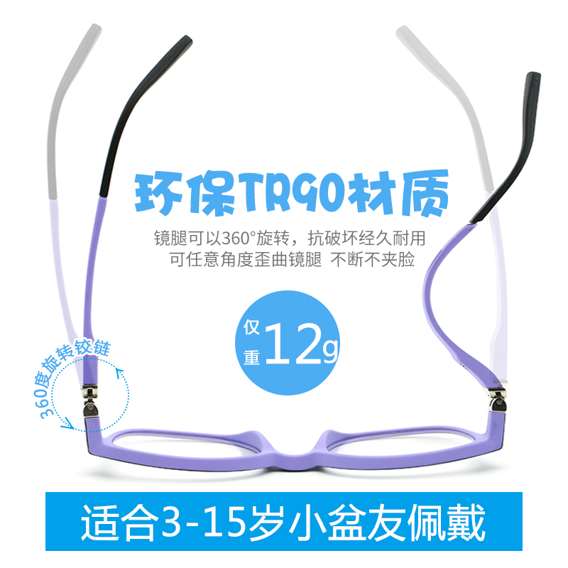 Purple Frame Powder Leg No Degree Anti-Blue Light Lens (suitable for 3-12 years) Black frame grey leg No degree anti-Blu-ray lenses (suitable for 3-12 years) Black frame Purple legs No degree anti-Blu-ray lenses (