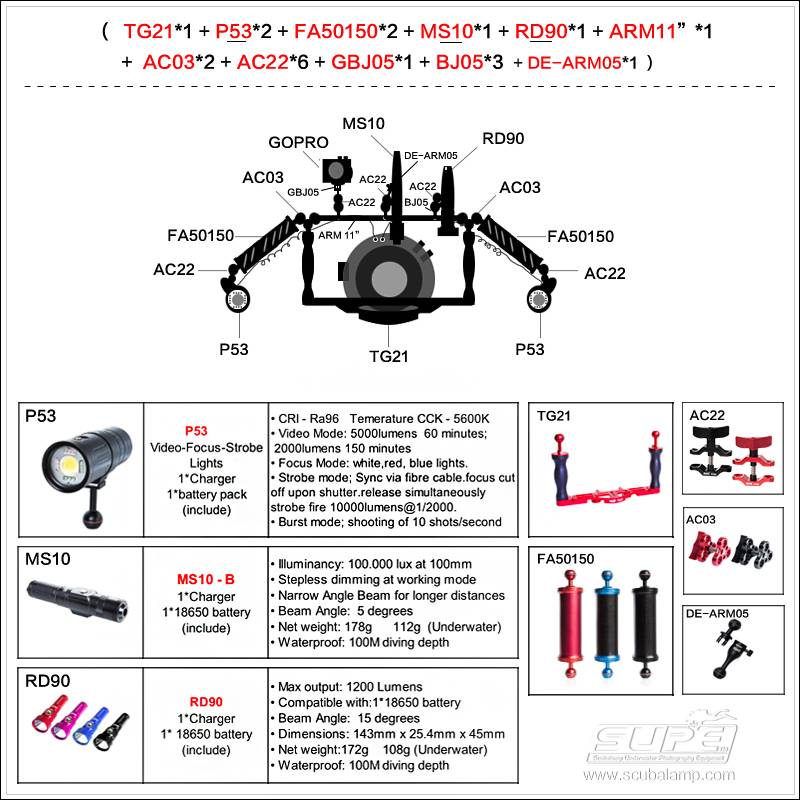 Scubalamp Subalamp diving photography TG20 camera waterproof case tray diving fill light P53