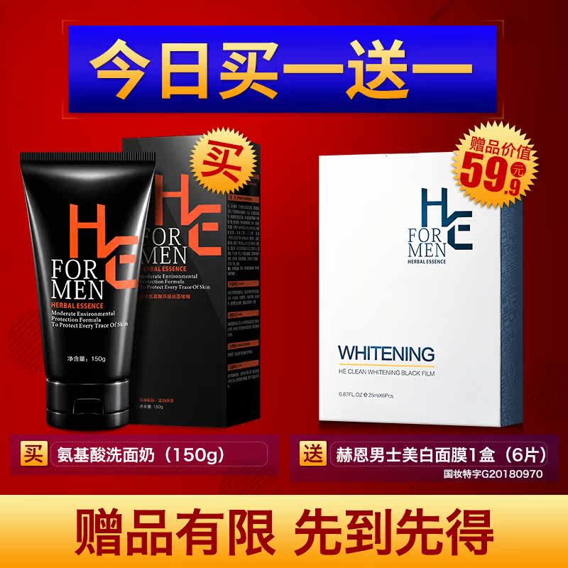 Voucher 55 Hern Men's Amino Acid Wash of Milk Control Oil Light Print Go Black Head Moisturizing And Acne Removing to Yellow Shrink Pores