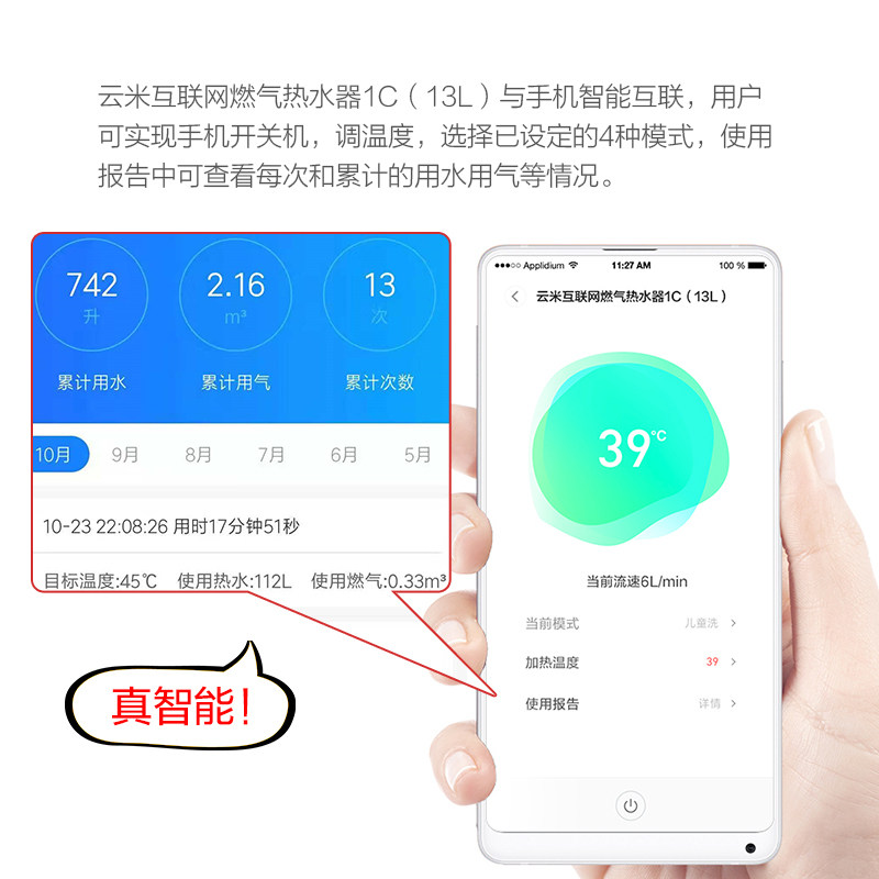 Yunmi gas water heater intelligent constant temperature frequency conversion strong exhaust natural gas household toilet 13L liters