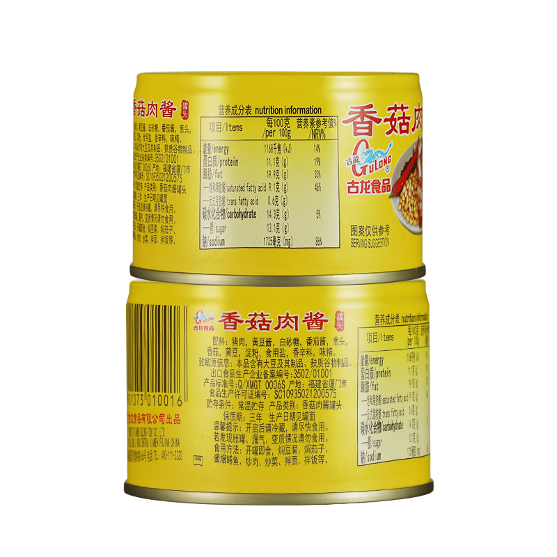 Gulong official mushroom sauce canned Xiamen specialty food food for a long time reserve of cooked food 180g*3 cans