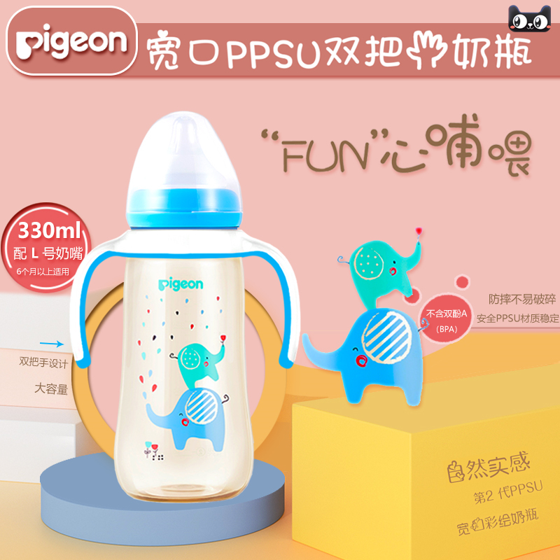 (double handle) Beloved natural real sense wide mouth PPSU colored drawing bottle 330mL blue L number nipple AA170