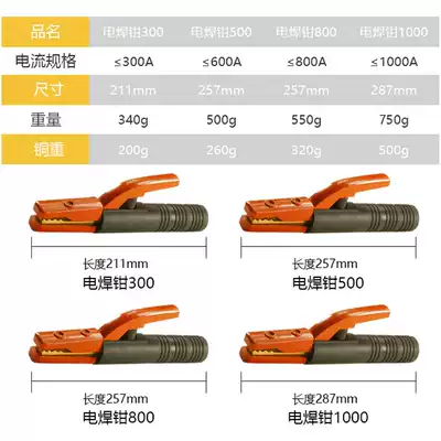 300A welding tongs pure copper forged copper weight 200g wear-resistant drop (1 set) 500A welding tongs pure copper forged copper weight 260g wear-resistant drop (1 set)