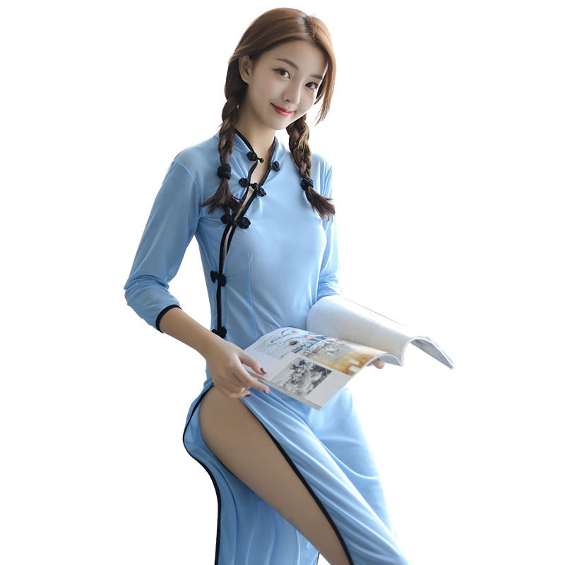 Republic Customs Lingerie Women's Underwear Pivot Side Fork Uniform Dress Sexy Qipao Sleeping Dress New