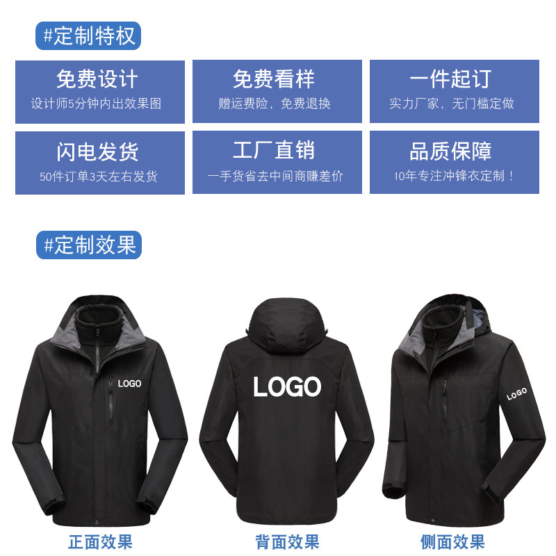 Winter storm clothes customized LOGO men and women three in one removable plus - plus - thicker clothes 4S tooling black