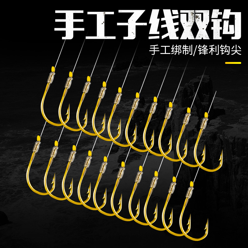 Anti-winding gold sleeve fishhook sub-thread double hook fishhook Ishini has barbed Izu tied finished combination sleeve hook