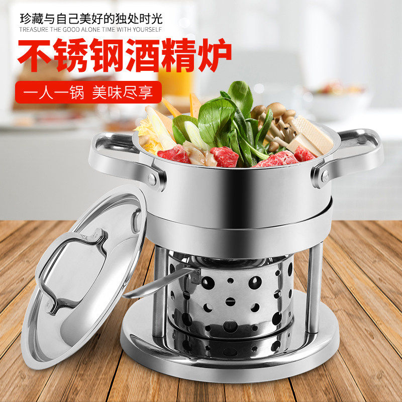 Alcohol stove small hot pot one person one pot single small hot pot 304 stainless steel small electric hot pot one person one household