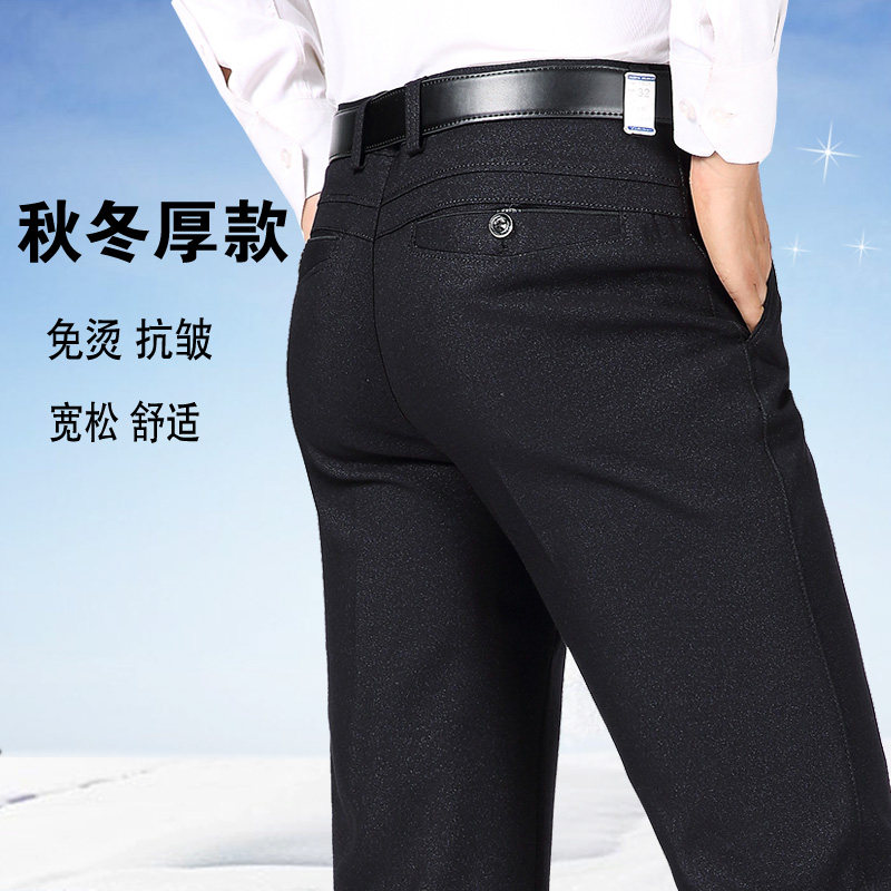 Dad Long Pants Men's Mid Aged Casual Pants Men Loose 40-50 Year Old Autumn Winter Thickened Suede Middle-aged Straight Sift Pants