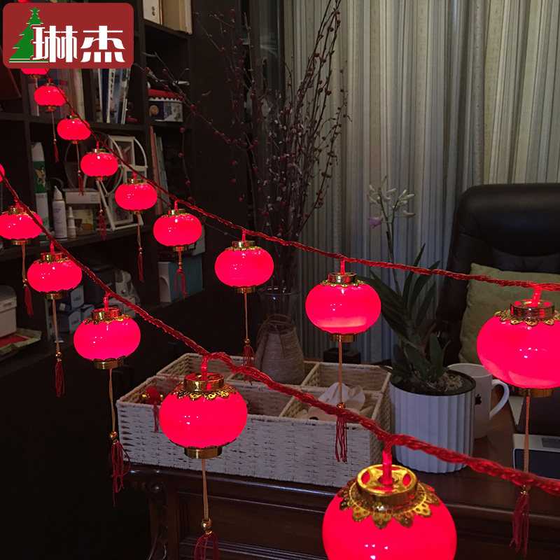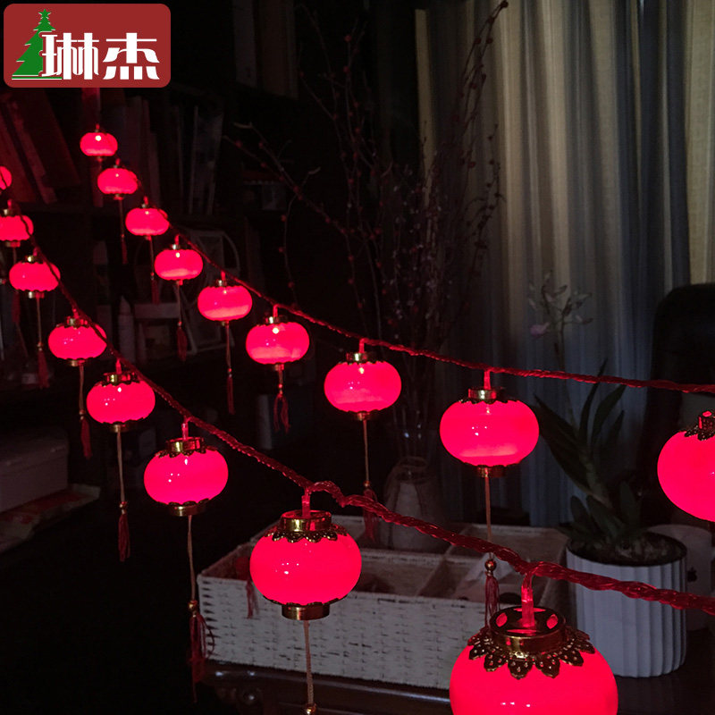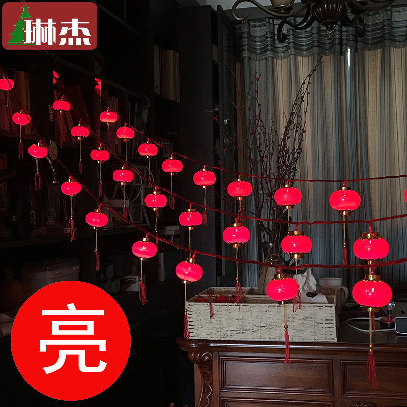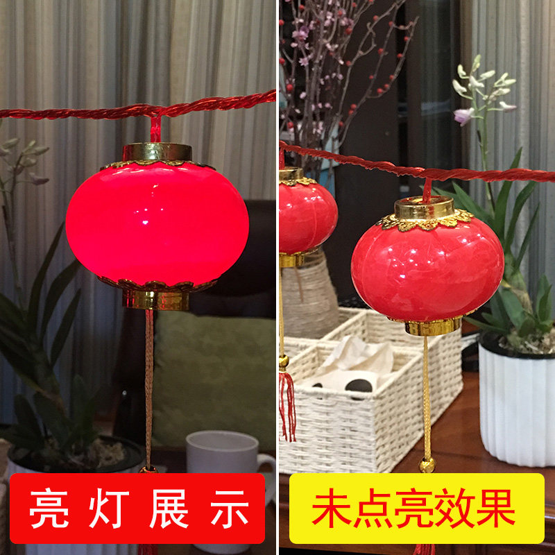 Linjie New Year small lantern with light decoration Small lantern Wedding celebration interior decoration Small lantern hanging flocking lantern