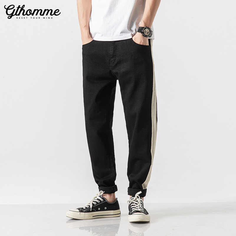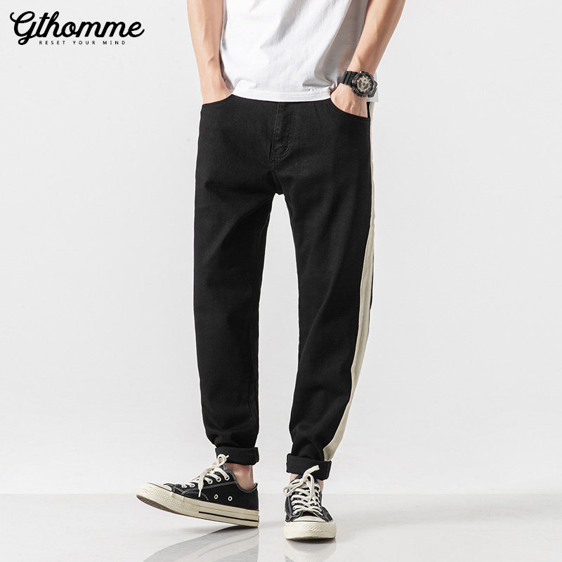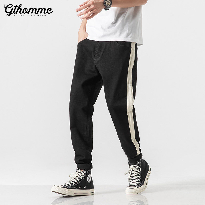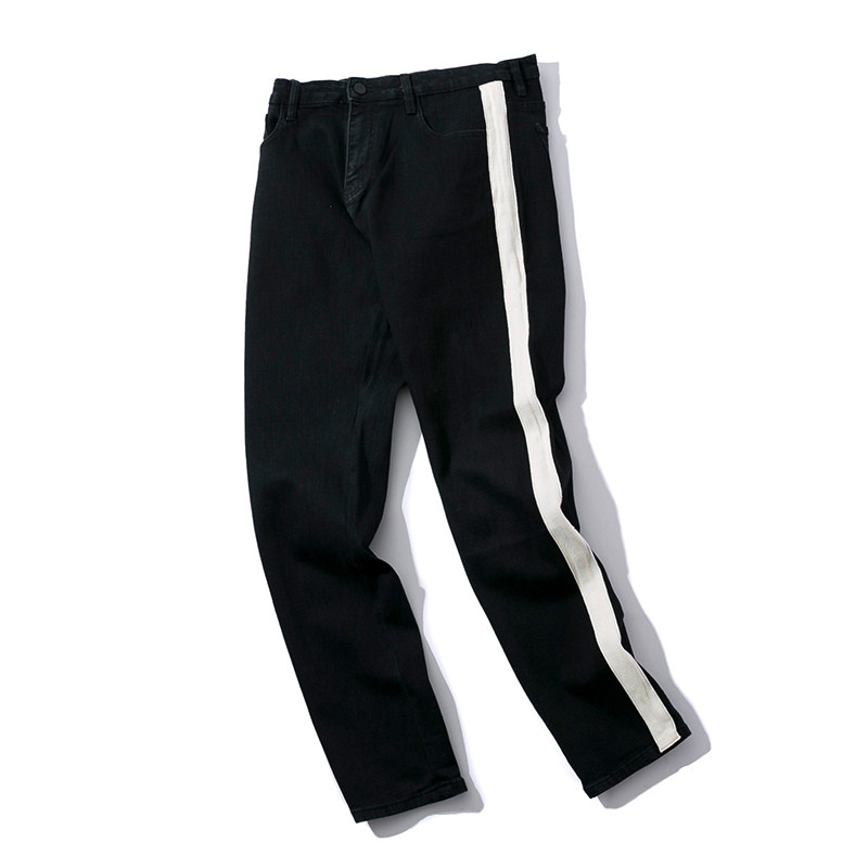End of season clearance 25% off spring and autumn men's jeans trend slim black trousers striped sweatpants