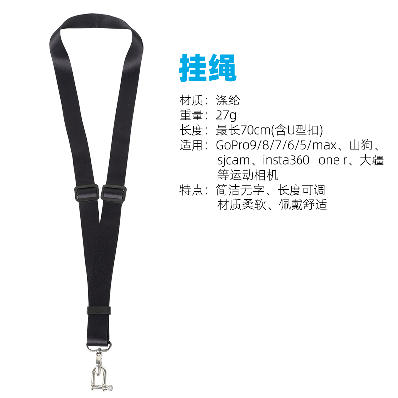 New adjustable sports camera lanyard GoPro hero9 8 7 5 small ant mountain dog anti-lost hanging neck sling