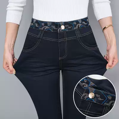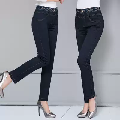 Spring and autumn mother jeans women's 2021 new high waist straight pants loose middle-aged women's pants 40-50 years old large size