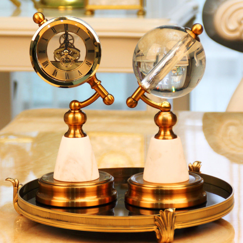 Crystal ball swing piece Globe Home Furnishing Nordic Style Watch And Watch Desktop Pendulum bookcase Wine Cabinet American Decorations