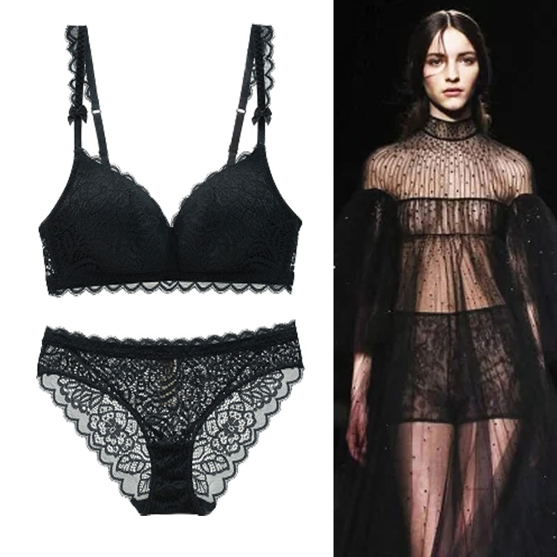 European and American bra lace upper breast underwear set Small chest gathered up thin under thick bra to close the breast sexy female bra