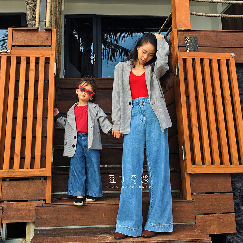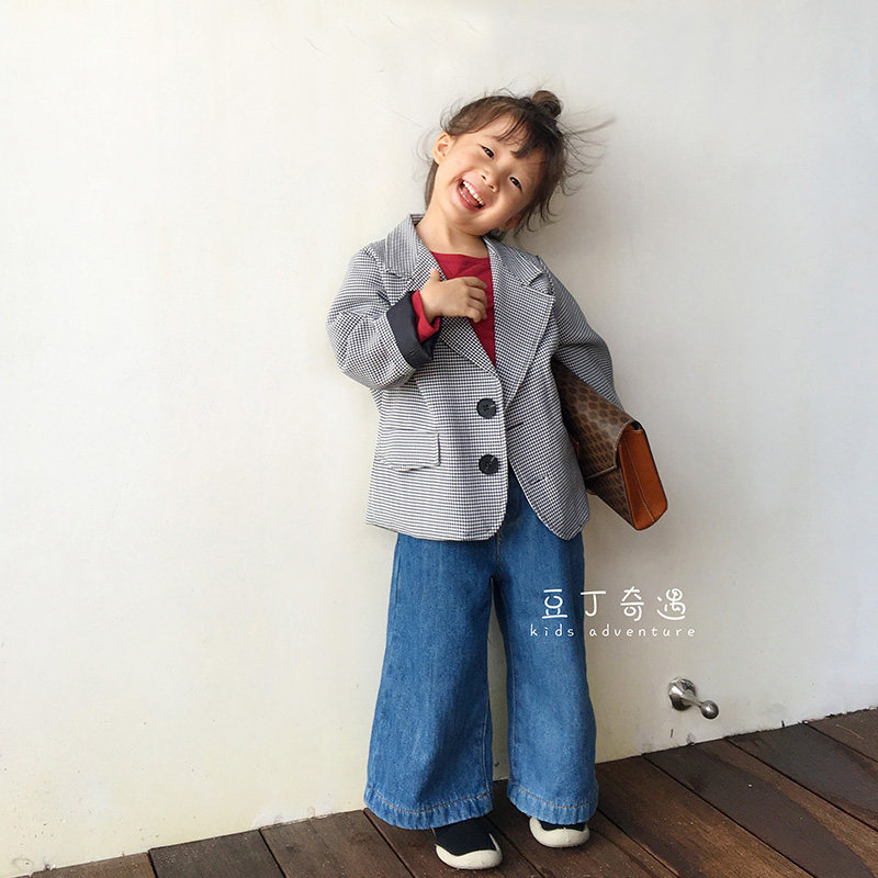 Douding adventure children's clothing girls 2020 spring and summer Korean version of the new parent-child houndstooth suit children's top jacket trendy