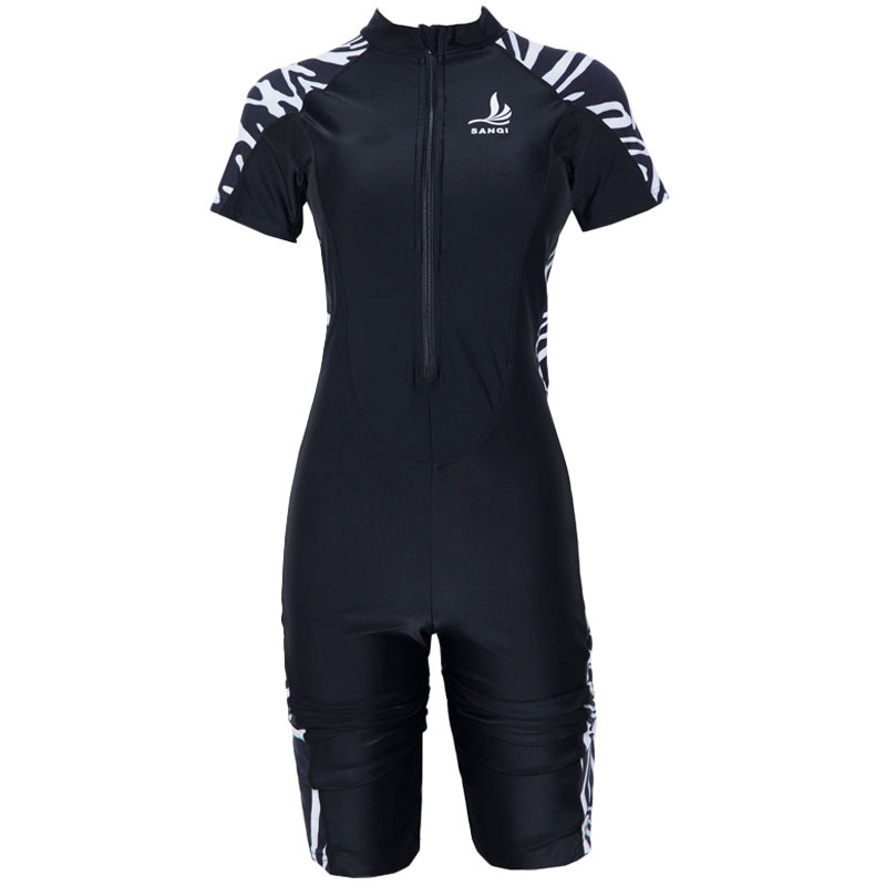 Sanqi swimsuit women's short-sleeved five-point boxer one-piece professional sports large size hot springs show thin and cover belly to send underwear