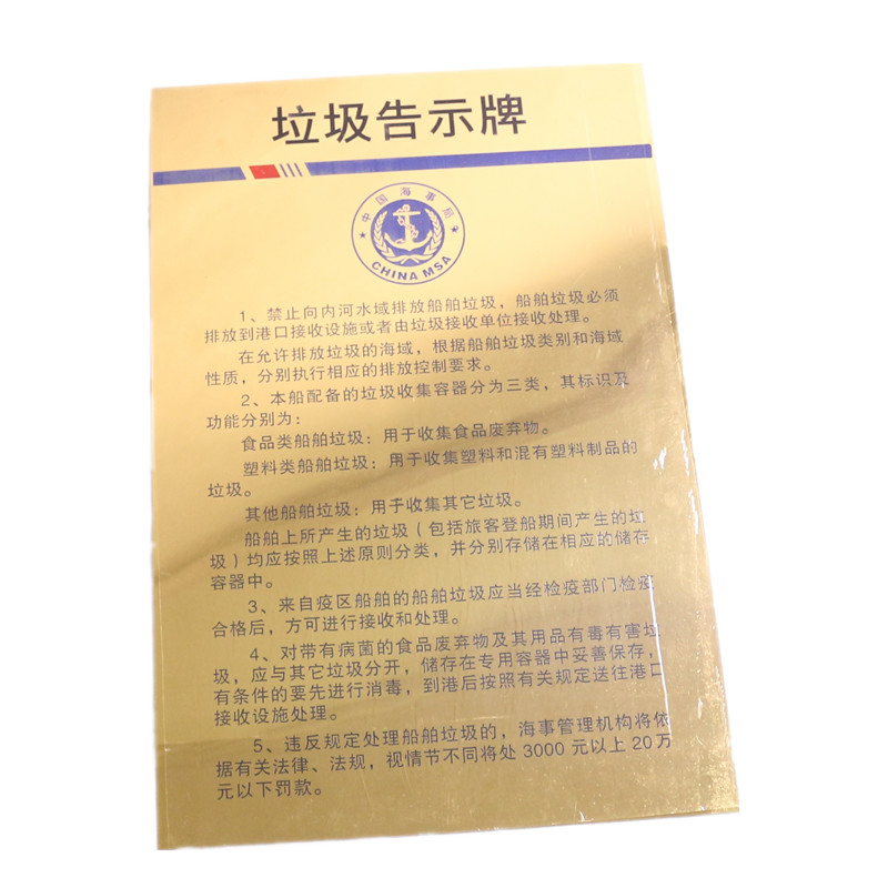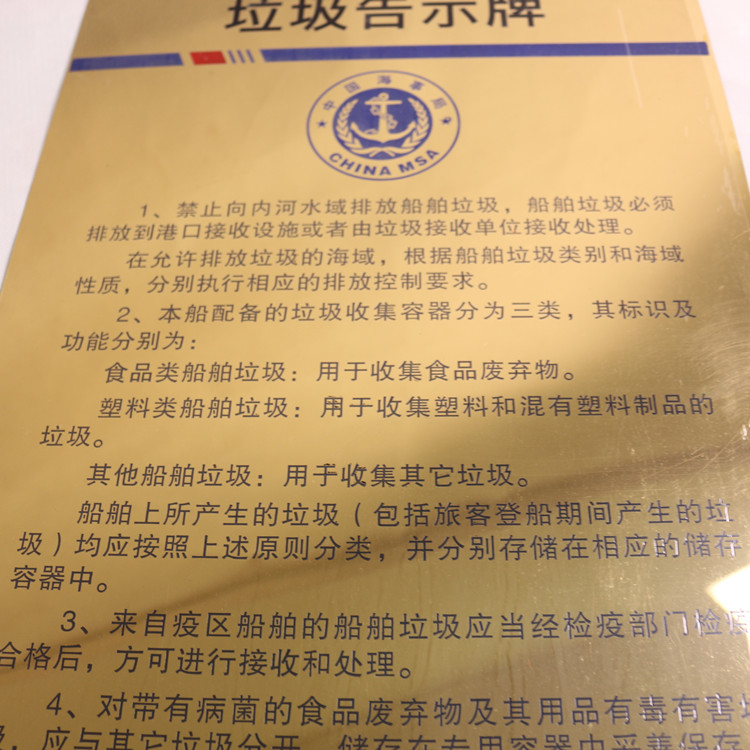 2019 new version of inland river garbage bulletin board marine Chinese version garbage sign board copper alloy ship garbage board