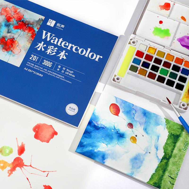 Yuesheng four-sided sealed glue watercolor book A4 painting book for primary and secondary school students 8k 16k 32k water-soluble color lead book 200g 300g painting sketchbook travel art book