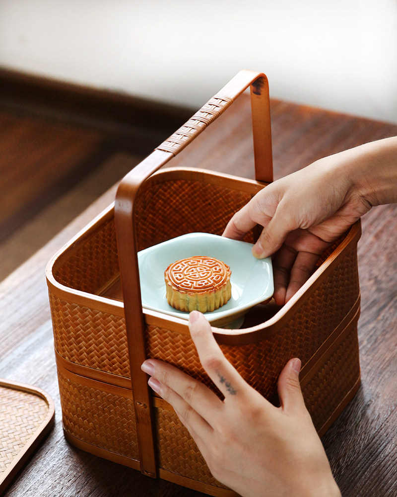 Mountain Mountain Bamboo Wood Day Style Bamboo Chronicler Collection Basket Lacquer Craft Gift Pendulum Decoration Tea Set Containing Box Saucer Snack Bowl Mooncake Gift Box