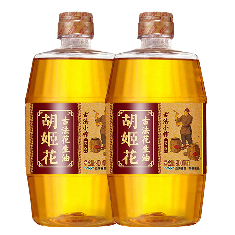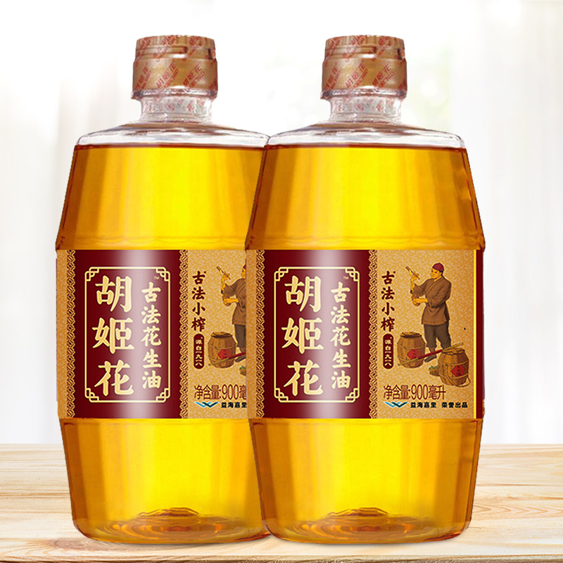 Orchid Flower Ancient Small Press peanut oil 900ml*2 pressed first-class small bottle of household stir-fry baking cooking oil