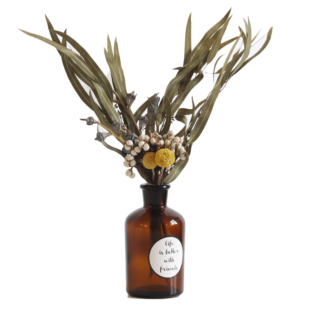 Rabbit tail grass cotton millet leaf S fine brown bottle cotton lover grass gold ball S wide brown bottle millet white flower millet leaf S wide brown bottle small pink ball flower lover grass S wide brown bottle green bushes leaves