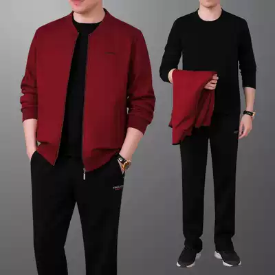 Middle-aged and elderly sports suit men spring and autumn three-piece father leisure suit old sportswear suit suit male father suit