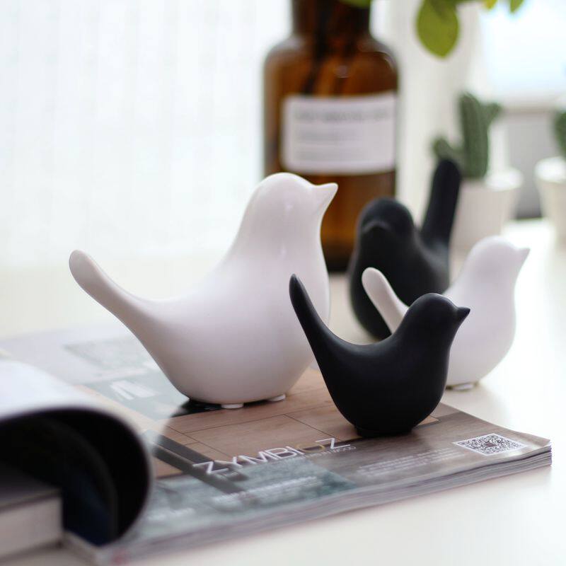 small number white ceramic small bird 6 cm large number white ceramic small bird 9 cm small black ceramic small bird 5 cm large number black ceramic small bird 8 cm set of 4 ceramic small birds (2 black 2