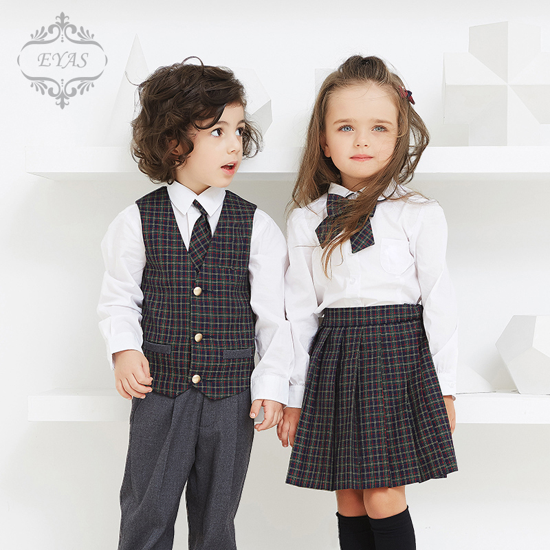 EYAS baby small suit children male and female plaid suit flower boy waistcoat A pleated dress suit with three sets of winter