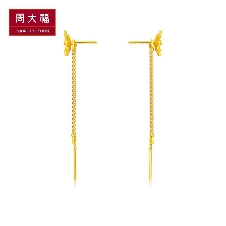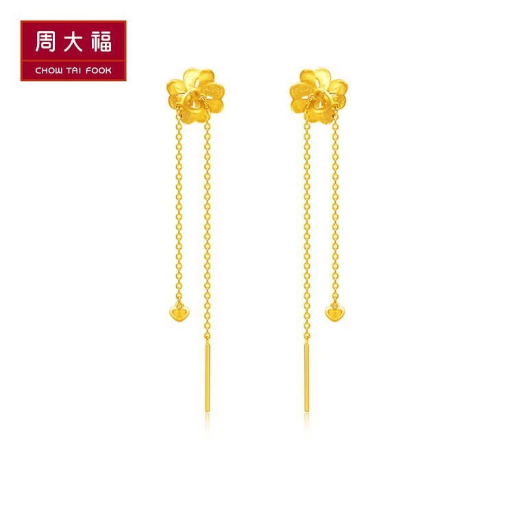 Chow Tai Fook flower and moon season four-leaf clover pure gold gold ear acupuncture price F211546 boutique
