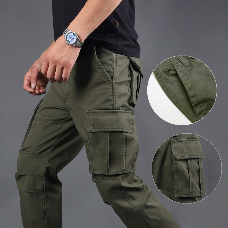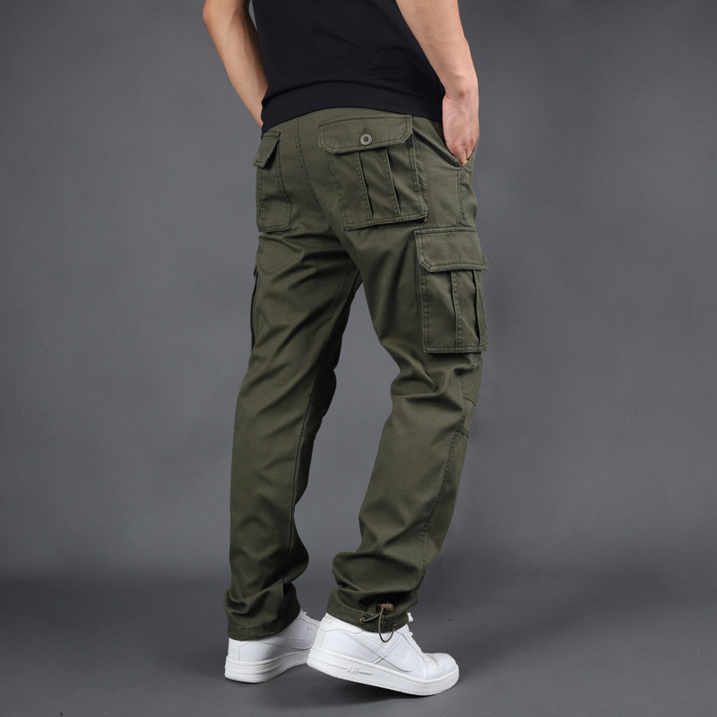 Men's autumn and winter casual pants thick straight loose large size multi-pocket overalls solid color trend outdoor sports trousers