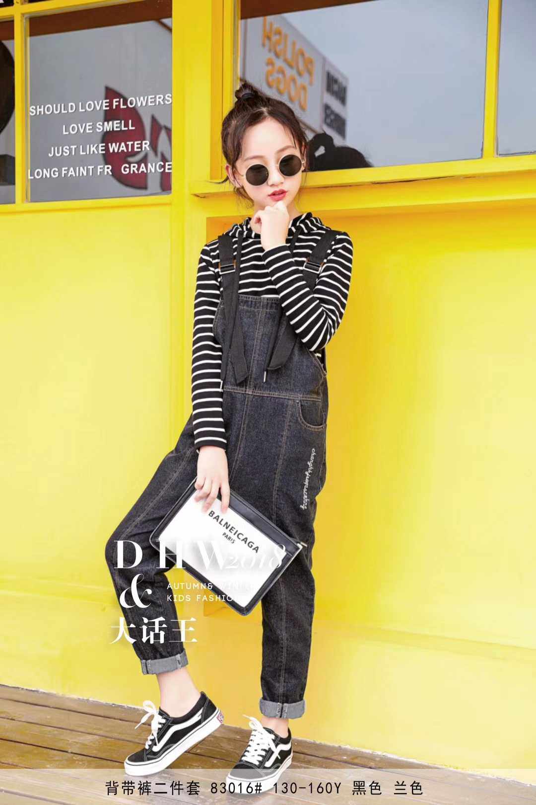 Dahuawang brand children's clothing girls middle and big children 2022 autumn new striped T-shirt denim overalls two-piece set