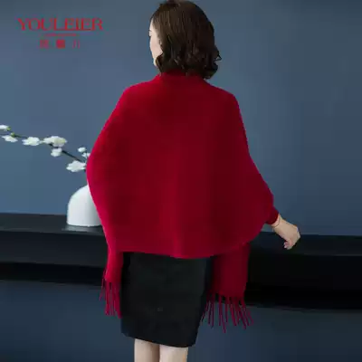 Shawl women's autumn and winter thickened tassel cardigan with sleeves cloak winter thickened cloak wild dual-use scarf jacket