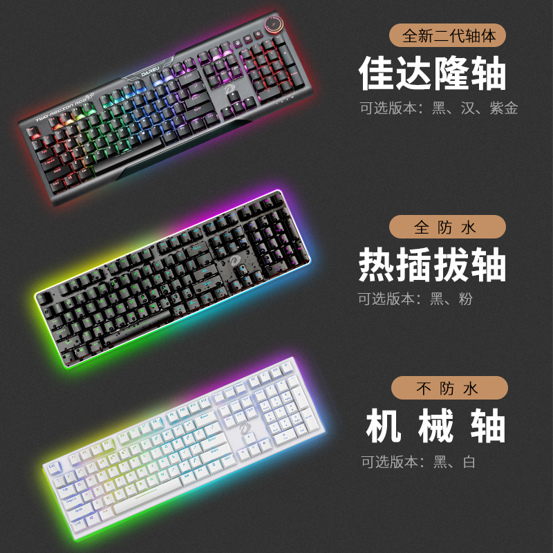 White (double RGB) not waterproof black (double RGB) not waterproof pink (hot swappable) waterproof version black (double RGB side lettering) not waterproof black (second generation Canadalon) No